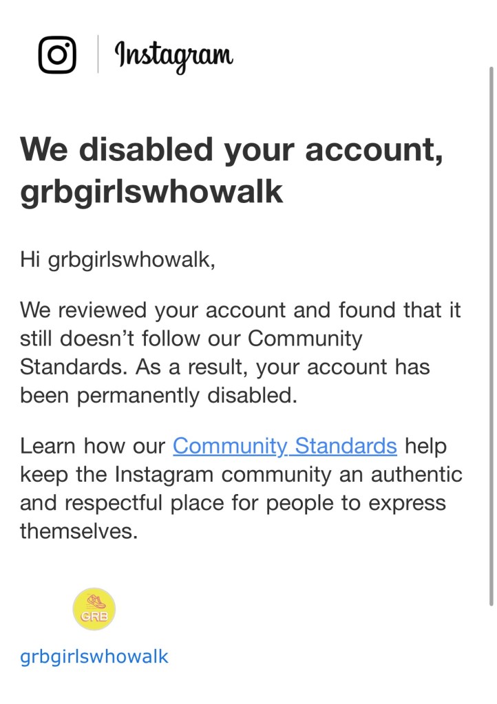 Well, we aren’t really clear what community standards we have violated, but our social accounts on Meta (Facebook and Instagram) are permanently disabled. We tried appealing 2x, but it is final.
